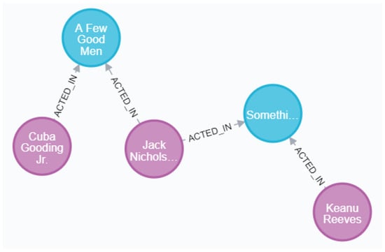 - Figure 6 shows the use of Cypher [,] to query the shortest path between two entities. The picture shows the shortest path between the two actors Cuba Gooding Jr. and Keanu Reeves.