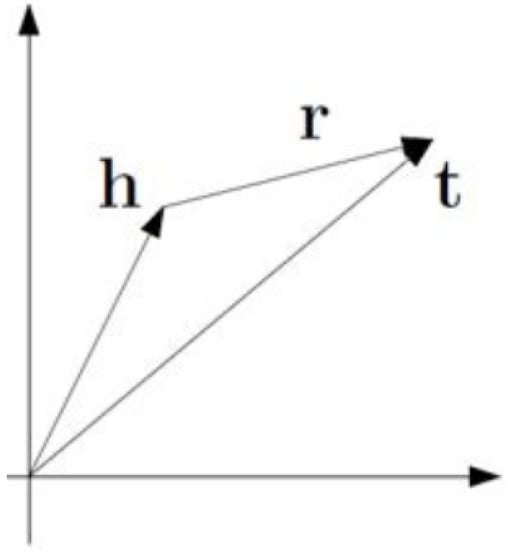 The algorithm can effectively vectorize the knowledge in the graph. We define h as head, r as relation, and t as tail. The specific idea of the TransE algorithm is shown in Figure 7. It hopes that the two entity vectors can be connected by a relation vector, that is, h + r ≈ t.