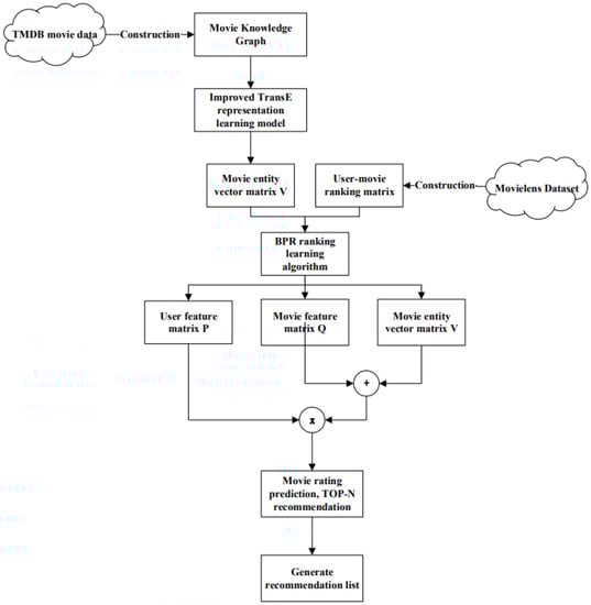- We proposed a movie recommendation algorithm KG-BPR that combines knowledge graphs and Bayesian personalized ranking. Two movie recommendation models based on knowledge graphs are proposed. The first method combines the knowledge graphs and Bayesian personalized ranking, introduces the movie entity vector matrix in ranking learning to help generate the user feature matrix and movie feature matrix in BPR ranking model. Furthermore, it applies them in the scoring prediction process. The advantages of this algorithm are verified by experiments.