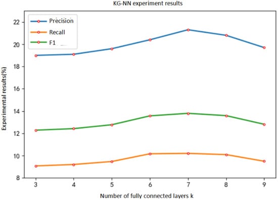 It can be seen from Table 6 that the trend of precision, recall and F1 value is roughly the same as the trend of the number of fully connected layers. When the number of fully connected layers is 7, the effect is the best. At this time, the precision reaches 21.3%, the recall rate reaches 10.204%, and the F1 value reaches 13.798%. When the number of fully connected layers is 9, the model is over-fitted and the performance decreases.