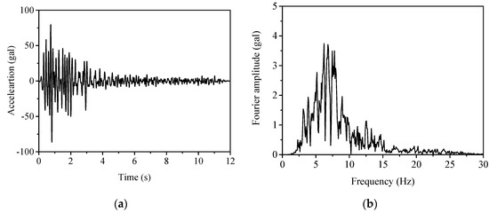 (a) Acceleration record of the Whittier Narrows–02 seismic wave and (b) its Fourier spectra.