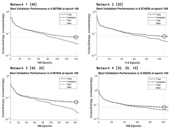 Table 3, Network 4 has three hidden layers, and the first, second, and third hidden layers contain 20, 20, and 10 nodes, respectively. For convenience, the hidden layer setup of Network 4 is signified by an array [20, 20, 10], the other three networks follow this rule of expression.