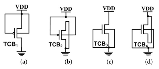 - Hanchate, N.; Ranganathan, N. LECTOR: A technique for leakage reduction in CMOS circuits. IEEE Trans. Very Large Scale Integr. Syst. 2004, 12, 196–205. [Google Scholar] [CrossRef]