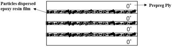 Figure 1. Illustration of the cross-section of the CFRP specimen interleaved with the particle-dispersed mixture film.