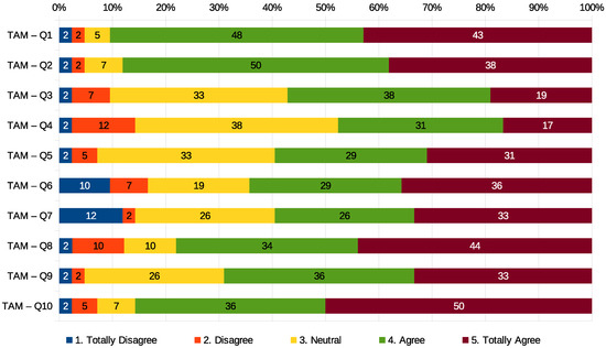 TAM questionnaire answers in percentage.