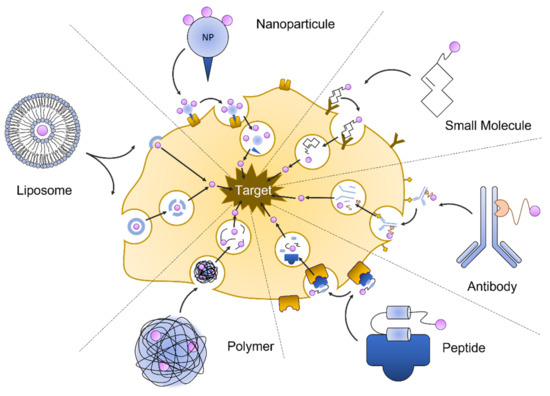 During glomerular filtration, low molecular weight (LMW) proteins are excreted with the primary urine and reabsorbed by proximal tubular cells. Reabsorption by the proximal tubular cells is a receptor-mediated endocytosis. After endocytosis, proteins are transported to the lysosome and enzymatically degraded into smaller peptides. Studies using macromolecules, such as chitosan [66] and glucosamine [67], or folate [68] as carriers, have shown that these molecule carriers accumulate and release drugs specifically in the kidney.