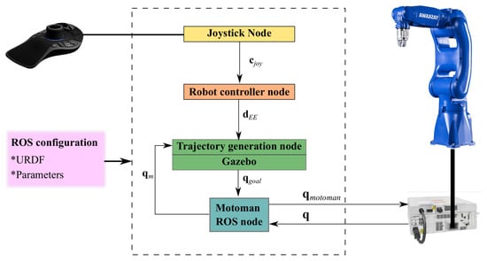 The studied system is mainly composed by a m-DoFs Yaskawa robot teleoperated by a joystick. To manipulate this system, a ROS-based control scheme is used for teleoperation tasks. This control method is described in Figure 1. It consists of: