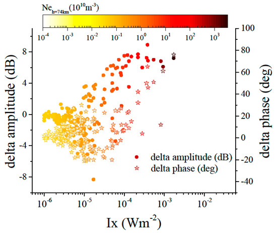 - Pandey, U.; Singh, B.; Singh, O.; Saraswat, V. Solar flare induced ionospheric D-region perturbation as observed at a low latitude station Agra, India. Astrophys. Space Sci. 2015, 357, 1–11. [Google Scholar] [CrossRef]