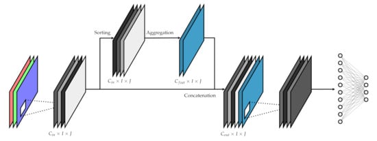 13], we introduced the OWA layer. The OWA layer modifies the usual CNN architecture by using OWA operators capable of aggregating the feature maps of a CNN based on global information (feature map metrics), even when inserted in the early layers of the network. This modification tries to improve the neighborhood analysis performed by the early convolutional layers of the network by leveraging contextual information about the whole image. Furthermore, the specific implementation proposed is designed to only provide new information without replacing the information already present, minimizing the possibility of any negative impact in the network expressivity.