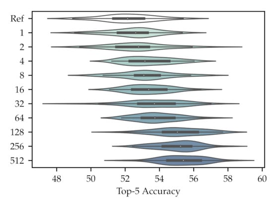is set to 128. The final top 5 accuracies are also shown as a violin plot in