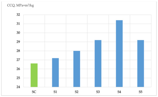 Quantitative analysis can be assessed by the increase in such indicators as the coefficient of structural quality for the investigated type of concrete in comparison to control samples made from control compositions. Thus, the increase was up to 32%.