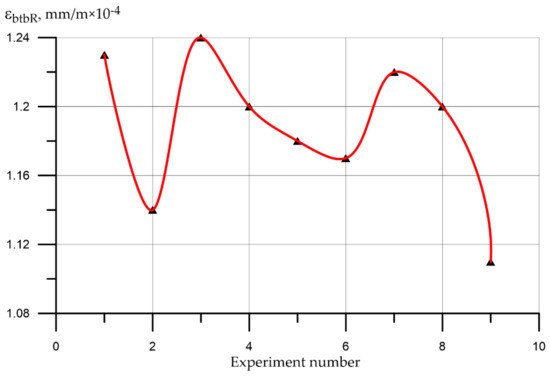 - εbR (µ, t)—ultimate deformations during axial compression, mm/m × 10−3;