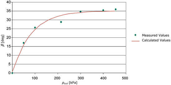 At non-identical filling pressures in the muscles (Figure 4), the actuator’s arm stabilises in the position corresponding to the equality of tensile forces in both muscles. The angular displacement β for the arm exposed to the external load with the mass m depends on the pulley radius rkl for identical changes in the length of pneumatic artificial muscles. The rotation of the arm is subject to the equation: