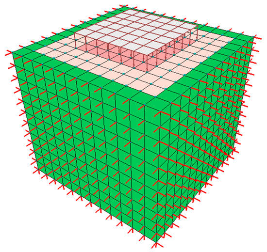 The FE model of the subsoil block, featuring the adopted indirect loading.