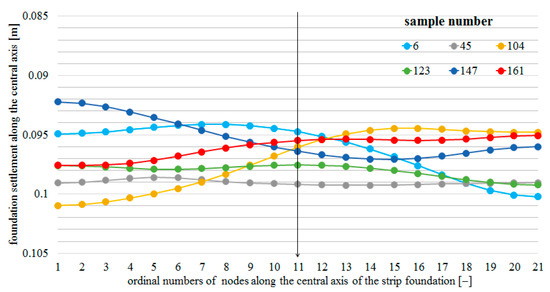 Figure 16 shows selected settlement cases along the foundation central axis.