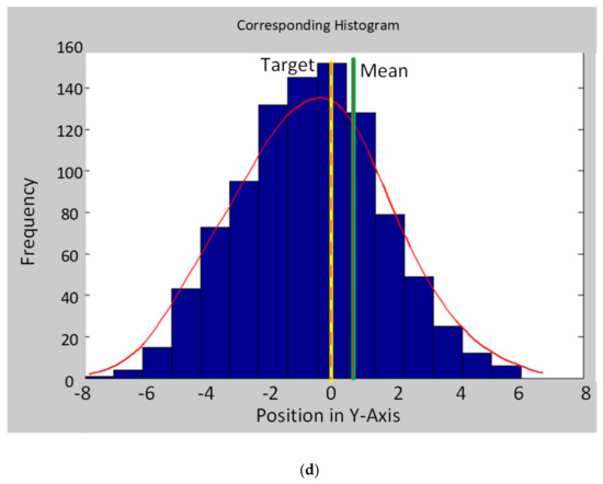 However, this characteristic of the wave line is suited to the Kalman filter because the error causes the data to form a bell-shaped histogram (imitating random noise in the electrical signal), as shown in Figure 8d. On this basis, the accuracy can be improved because when the operator moves the cursor to approximately come close to both boundaries of the path back and forth across the target line, there is a very high chance that the cursor will frequently cross the target line so that the frequency of the positions will be high at the value close to zero. Consequently, the filtered output, represented by the solid line, is straighter and closer to zero than the dash line produced by the conventional approach is, resulting in lower total variation.