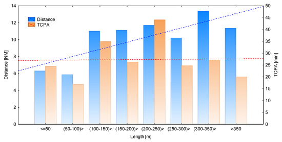 3.2.2. Influence of the Size of the Target Ship on the Distance between the Ships and the TCPA at the Start of the Manoeuvre