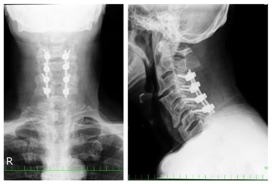 Posterior decompression fixation of the 3rd–6th cervical vertebrae was performed in case 1.