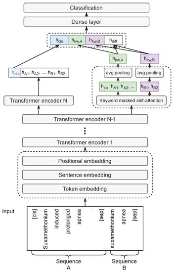 Nth standard transformer encoder. In other words, the original design of self-attention performs pair-wise attention between every pair of tokens, and the proposed keyword masked self-attention only concerns the attention (1) from tokens in