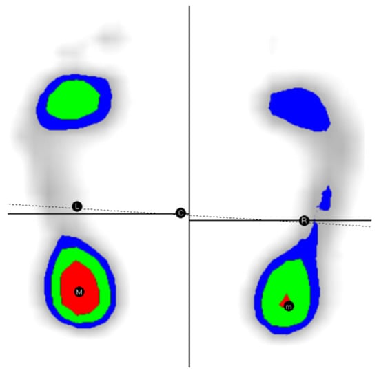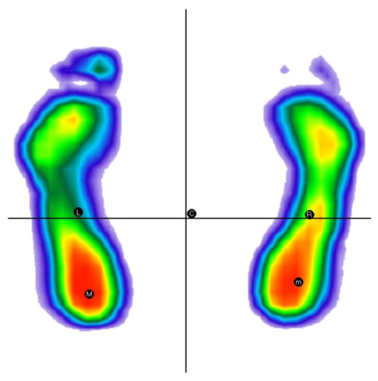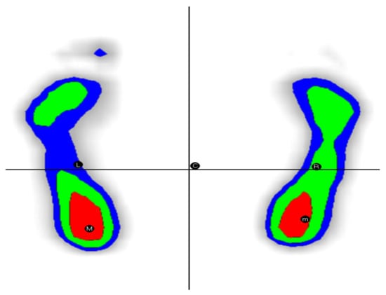 Example of perfect alignment of pressure centers: female subject. Misalignment L-R = 00.