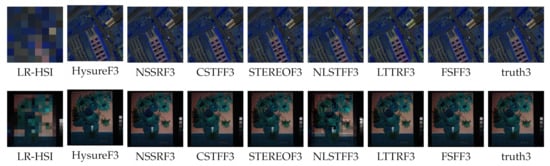 Figure 5 shows the fusion results of the compared methods on the CAVE dataset. Similarly, the NLSTF and STEREO methods obtained the worst fusion results due to the poor fusion of these two methods at 32× super-resolution. Our FSF method still achieves better fusion results.