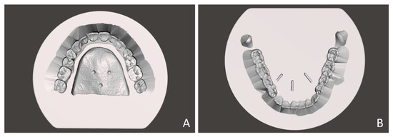 Figure 3. Design of the geometry guides. (A) Maxillary geometry guide. (B) Mandibular geometry guide.