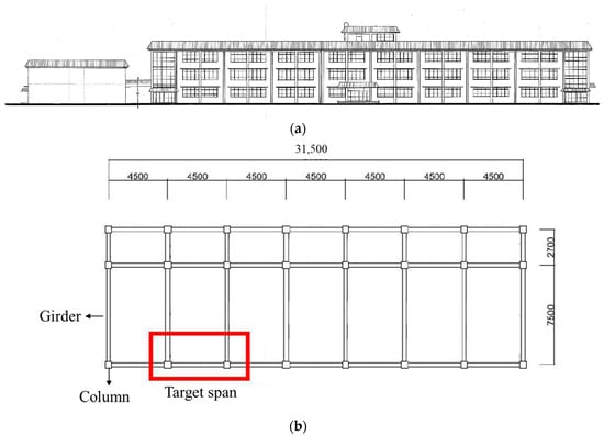 Benchmark structures. (a) Exterior elevation; (b) floor plan (mm).