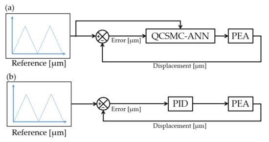 Control schemes used where (a) is the proposed QCSMC-ANN and (b) is the contrasted PID.