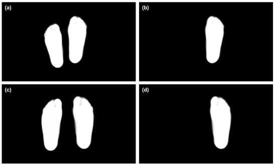 Subsequently, for further processing, the IR images corresponding to the right foot were flipped and registered to the left foot model. Figure 6b,d show all the overlapped images for the female and male subjects, respectively.