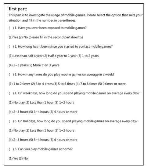 The questionnaire was divided into three parts, including personal basic information, smartphone gaming experience, and self-concept scale. The questionnaire is shown in Figure 2, Figure 3, Figure 4 and Figure 5.