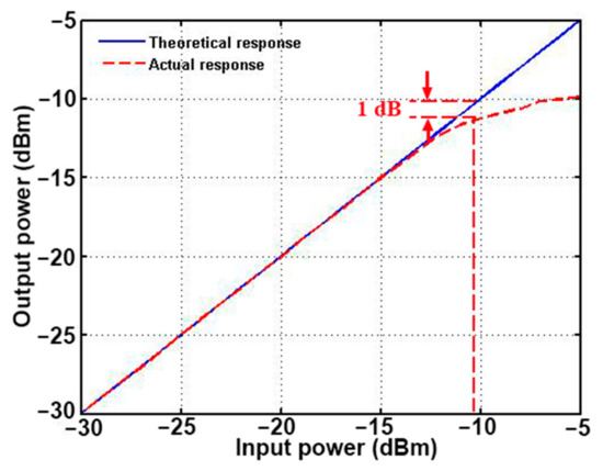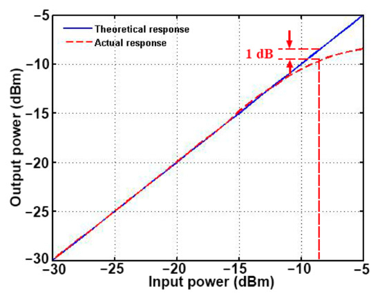 The measured P1dB of the NBPF at VBP5 with the input power when fo was 165.8 kHz.