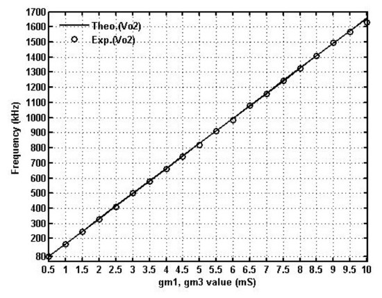 From Equations (13) and (14), the NBPF parameters of fo and Q have orthogonal tunability by tuning the gm1 for fo first and then the grounded resistor R1 for Q without affecting parameter fo.