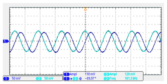According to Equation (21), the magnitude ratio and phasor of output voltages Vo1 and Vo2 are given as