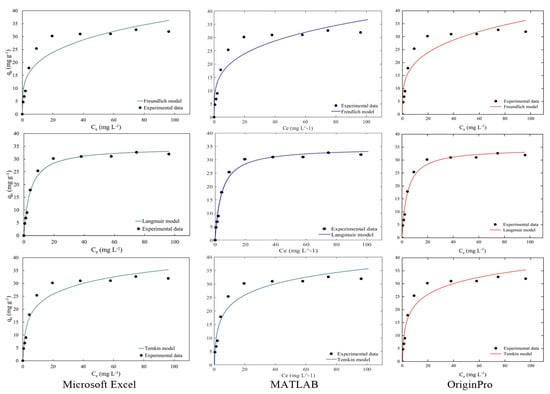 The comparison of two-parameter isotherm plots from a Microsoft Excel-based program, MATLAB and OriginPro.