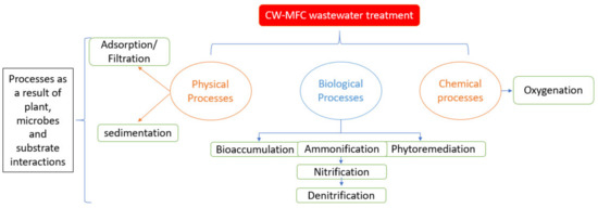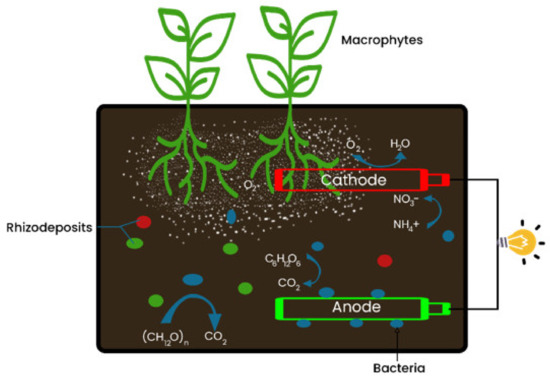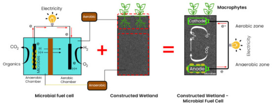 - Yadav, A.K.; Srivastava, P.; Kumar, N.; Abbassi, R.; Mishra, B.K. Constructed Wetland-Microbial Fuel Cell: An Emerging Integrated Technology for Potential Industrial Wastewater Treatment and Bio-Electricity Generation. Constr. Wetl. Ind. Wastewater Treat. 2018, 493–510. [Google Scholar] [CrossRef]