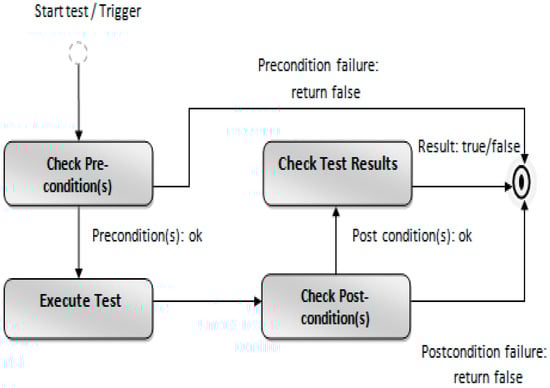 A group of test cases is called a test suite. The test case for “data received at Rx with start delay” is shown in Table 3. While performing the test, the normal flow of events in the proposed framework is represented in Figure 7 as an activity diagram. All the test preconditions must be checked when the trigger event of the corresponding test case takes place. One of the tests related to this particular test case is performed if all the preconditions are satisfied.