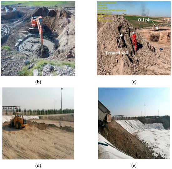 - The treated soil was stored beside the oil pit (Figure 3c) to be backfilled, after reconstructing and lining the pit, and prepared as a construction earth material.