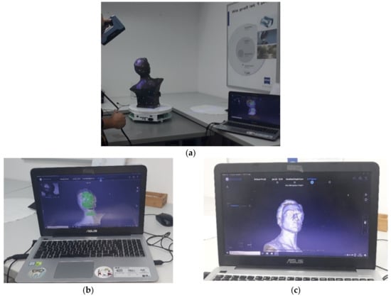 In recent years, 3D scanning has become a widespread technique for collecting 3D images of cultural heritage artifacts, in the areas of small historic objects [,,], sculptures [,,,], rooms [,], or large buildings and entire architectural sites [,,,]. Structured lighting technology is suitable for the digitization of cultural heritage objects because it is a contactless method for 3D digitization []. Another reason for the widespread use of 3D scanners in the process of digitization of cultural heritage is the high precision of the obtained models [,] as well as the fact that the 3D model can be obtained relatively quickly []. Scan results are visible in real-time in the appropriate software that is created for post-processing the data collected.