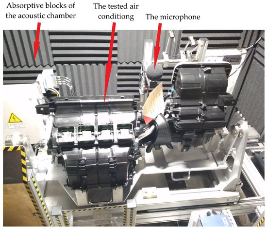 Manufactured goods can be tested for various physical features. One minor area of quality control involves checking the quality of a product’s sound expression; therefore, separate scientific disciplines are dedicated to solving such tasks. The field of acoustic event detection [5,6] aims to detect occurrences of certain events in an audio recording [7] and can be used for solving industrial applications [8]. In contrast, the area of industrial sound analysis deals with the automatic identification of faults in production machinery or manufactured products by analysing audio signals [9]. In general, testing products directly on a production line is very problematic since the measurement is affected by the noisy environment of production plants. Anechoic chambers, used in the prototype development phase, meet the requirements for the complete filtering of environmental noise (EN). The chambers that are installed in production plants, where space is limited, are not as effective in the filtering of EN. Therefore, it is important to test how effective an anechoic chamber is in filtering noise coming from the surrounding environment using the measured data of the specific corresponding production conditions [10].