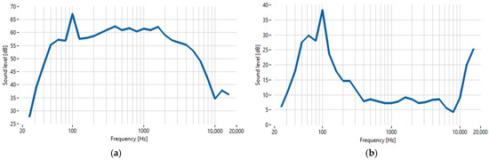 Both acquired signals are converted from pressure amplitude to sound pressure level (SPL) on a decibel scale [34], which is usually used in this case, and shown in Figure 3.