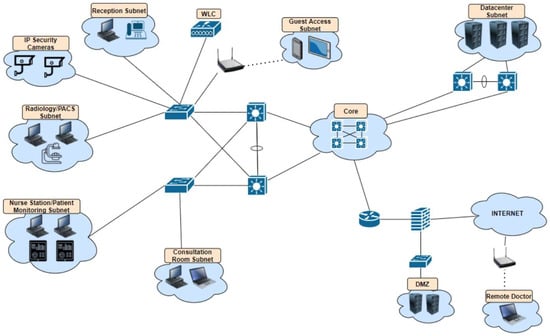- Cisco. Cisco Medical Grade Network, Cisco. 2012. Available online: https://www.cisco.com/c/dam/global/en_ca/solutions/strategy/healthcare/assets/docs/09CS2124-MGN.pdf (accessed on 24 February 2021).