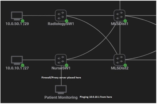 The objective of testing the latency was to find out which was the most appropriate method of microsegmenting medical devices and vulnerable workstations. In this scenario, the tests were pinging the PACS workstation from the device representing the MRI scanner and pinging one of the nurse workstations from the device representing one of the patient monitoring systems.