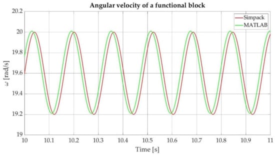 Angular velocity of a functional block—a comparison between the results from Simpack and MATLAB.