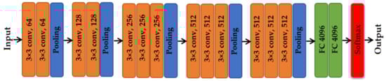 - Simonyan, K.; Zisserman, A. Very deep convolutional networks for large-scale image recognition. In Proceedings of the International Conference on Learning Representations, San Diego, CA, USA, 7–9 May 2015; pp. 1–15. [Google Scholar]