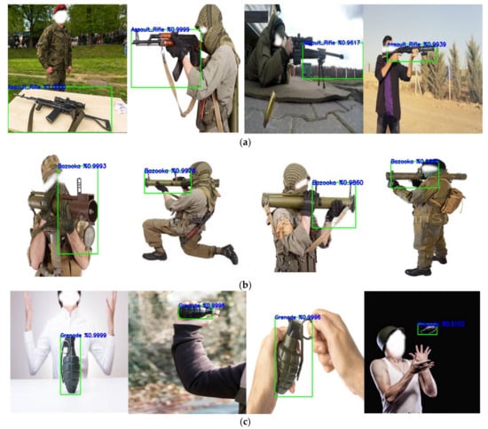 Table 1. The dataset comprised images of assault rifles, bazookas, grenades, hunting rifles, knives, pistols, and revolvers (