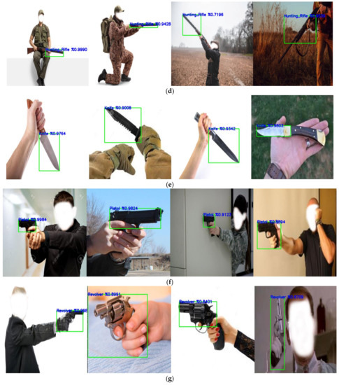 28]. In another real-time object detection study, the authors detected handheld weapons (pistols and rifles). In that study, a TensorFlow-based application of Overfeat, a CNN-based image classifier and feature extractor, was used to detect and classify weapons in the image [