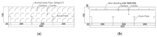 Cross-section of deck specimens: (a) SFRC deck slab and (b) wire mesh deck slab.