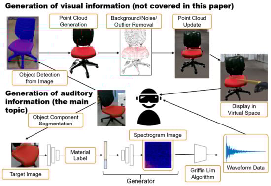 Here, we describe the process of the entire system, from object recognition to impact sound presentation, in VR that reproduces the real world. The configuration of the system is shown in Figure 4.