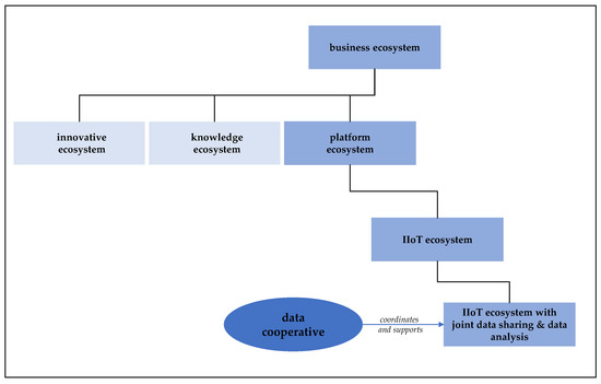 We understand the formation of a data cooperative as a manifestation of a business ecosystem in the Adner sense that has the purpose of sharing and analyzing data. As we also focus on IIoT data, the data cooperatives we are investigating are also considered variants of an IIoT ecosystem. In this context, the tangible data cooperative is a separate legal entity that incorporates coordination responsibilities for shared resources. Figure 3 shows the resulting typology.