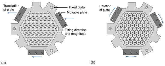 The flowers are tilted with an angle , through a displacement of the movable plate, as shown in Equation (1). Where is the displacement of the movable plate and L is the distance between the movable plate and the fixed plate.